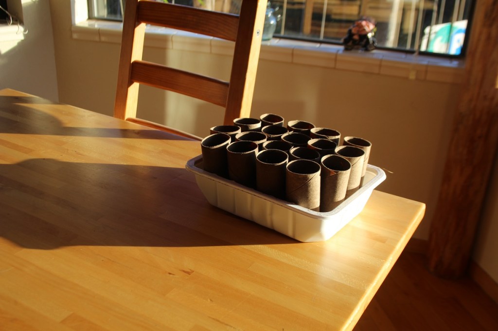 These have dirt and cauliflower seeds in them in hopes to get them started early for February or March planting amongst the broad beans in the garden.