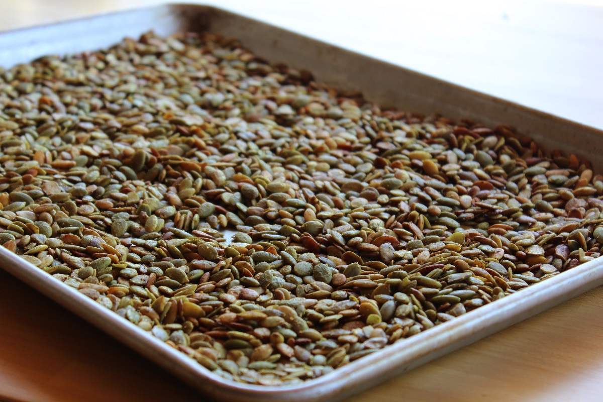 The raw seeds are pretty plain by themselves and I wanted to do something more flavorful, but even plain with no salt they are delicious and great on salads.